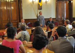 У приміщенні Чернівецької обласної державної адміністрації відбулося підсумкове засідання Організаційного комітету з проведення ІІ туру Всеукраїнського конкурсу “Кращий державний службовець” у Чернівецькій області. У ході засідання Оргкомітету визначено переможців та лауреатів ІІ туру Конкурсу у двох номінаціях “Кращий керівник” і “Кращий спеціаліст”. Переможцями стали: У номінації “Кращий керівник” серед державних службовців Чернівецької обласної державної адміністрації – Нахамко Василь Іванович – начальник відділу з питань охорони культурної спадщини, національностей та релігії управління культури Чернівецької облдержадміністрації, серед державних службовців районних державних адміністрацій Чернівецької області – Литвинюк Віктор Юрійович – начальник відділу ведення Державного реєстру виборців апарату Кіцманської райдержадміністрації. У номінації “Кращий спеціаліст” серед державних службовців Чернівецької обласної державної адміністрації – Ісопенко Ірина Юльянівна – головний спеціаліст відділу дошкільної , загальної середньої, позашкільної освіти управління освіти і науки Департаменту освіти і науки, молоді та спорту Чернівецької облдержадміністрації, серед державних службовців районних державних адміністрацій Чернівецької області – Ткачук Мирослава Петрівна – головний спеціаліст відділу Державного реєстру виборців апарату Сторожинецької райдержадміністрації. Лауреатами стали: У номінації “Кращий спеціаліст” серед державних службовців Чернівецької обласної державної адміністрації – Житарюк Анжела Миколаївна – головний спеціаліст відділу формування НАФ та діловодства Державного архіву Чернівецької області. У номінації “Кращий керівник” серед державних службовців районних державних адміністрацій Чернівецької області – Аморциту Анжела Василівна – начальник відділу аналізу, прогнозування, обліку, фінансово-кредитного, юридично-кадрового забезпечення та врегулювання відносин власності управління агропромислового розвитку Новоселицької райдержадміністрації та Раренко Інна Петрівна – завідувач сектору з питань внутрішньої політики та доступу до публічної інформації апарату Кельменецької райдержадміністрації. У номінації “Кращий спеціаліст” серед державних службовців районних державних адміністрацій Чернівецької області – Жуковська Тетяна Юріївна – головний спеціаліст служби у справах дітей Путильської райдержадміністрації та Рибак Юлія Василівна – головний спеціаліст архівного відділу Кіцманської райдержадміністрації. Вітаємо! |