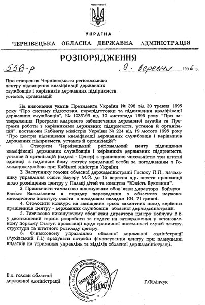Про центрНормативно-правова база про створення ЦентруРозпорядження обласної державної адмністрації