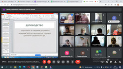 11-12 травня 2023 року в Центрі відбувся короткостроковий семінар за дистанційною формою навчання в режимі онлайн, за допомогою платформи Google Meet на тему «Діловодство в управлінській діяльності органів державної влади» для посадових осіб органів місцевого самоврядування.